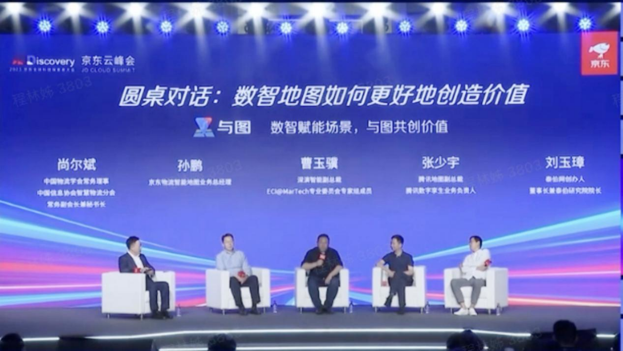 在“数智化时代地图应用如何更好地赋能场景创造价值”的主题圆桌论坛上,中国物流学会常务理事尚尔斌、京东物流智能地图业务负责人孙鹏、哈希游戏智能副总裁曹玉骥、腾讯地图副总裁张少宇以及与会的业界专家、学者围绕数智地图如何更好地创造价值,进行了深入交流和探讨。